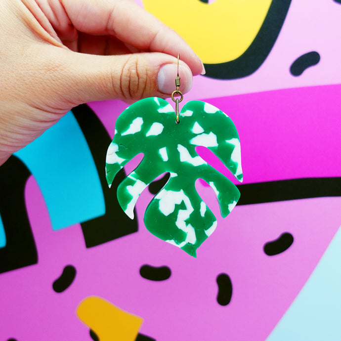 Recycled Variegated Monstera Statement Earrings